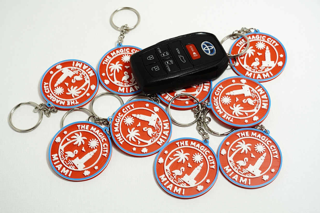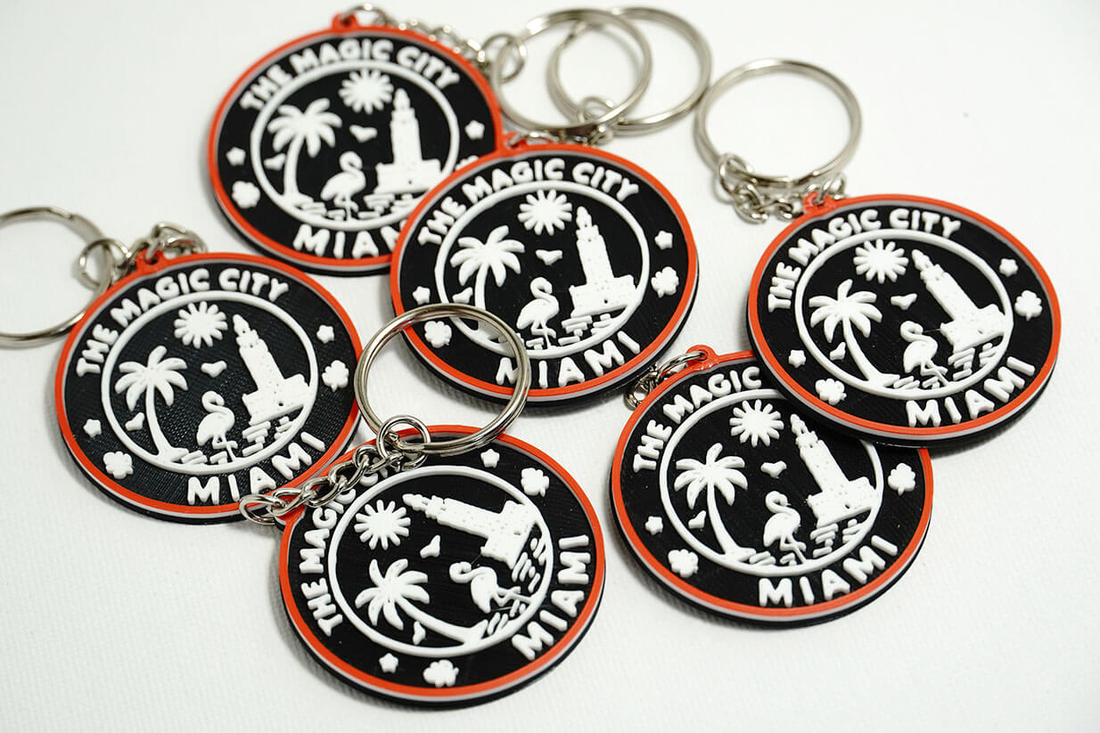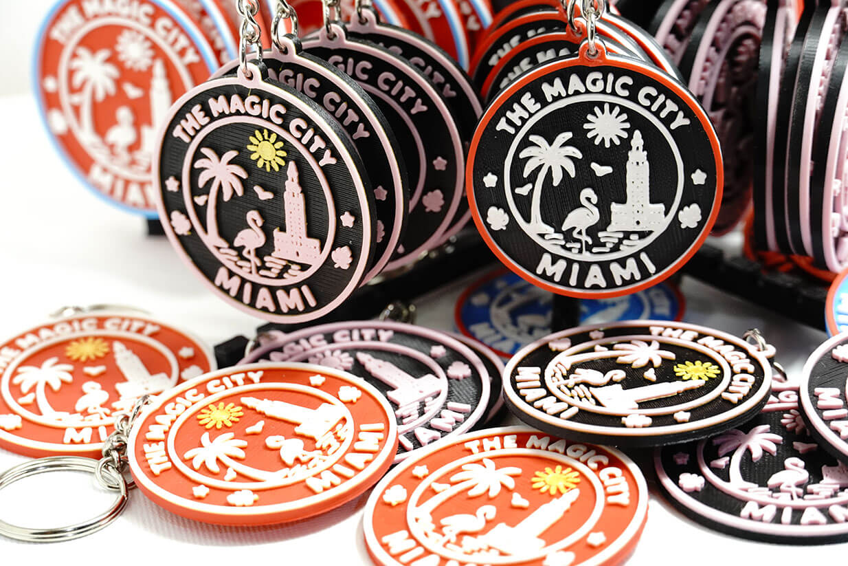 Each keychain is 3D printed layer by layer in North Carolina, combining artistic detail with modern craftsmanship.
