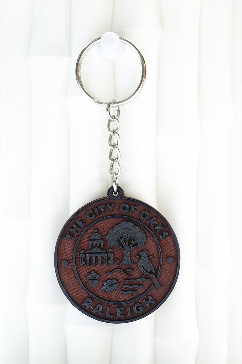 Raleigh keychain, City of Oaks, brown and black keychain, NC souvenir, executive gift, vintage keychain, handmade in North Carolina, Cirku3D, heritage edition, craft